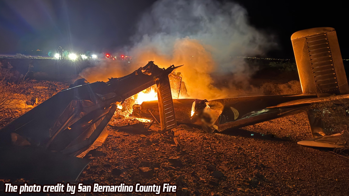 The San Bernardino County Sheriff’s Department deputy was first to arrive after 8:40pm July 13, 2025, and found a single-engine, fixed wing, Piper plane completely engulfed in flames. The call type was quickly changed and the SBCoFD units were updated with the appropriate information.