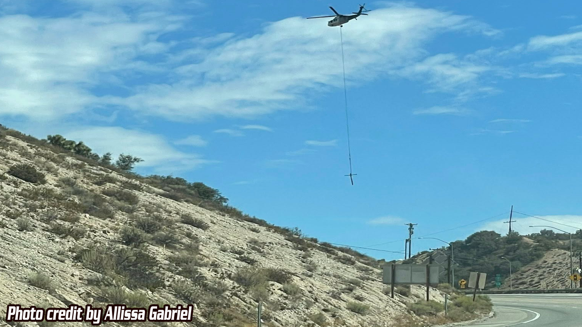 Contractors working for Southern California Edison closed Highway 138 between Highway 2 and Sheep Creek Road to replace utility poles.
