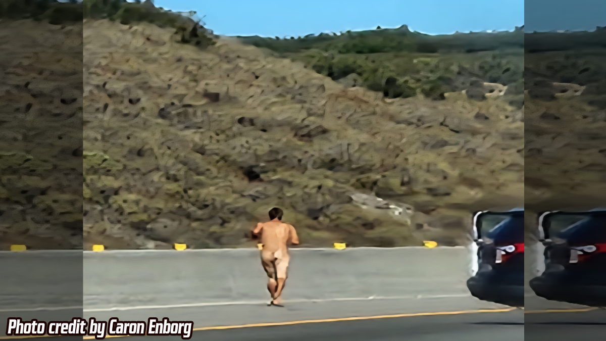 The California Highway Patrol was getting calls around 11am October 20, 2025, of a naked man in the center divider near the Kenwood Avenue exit.