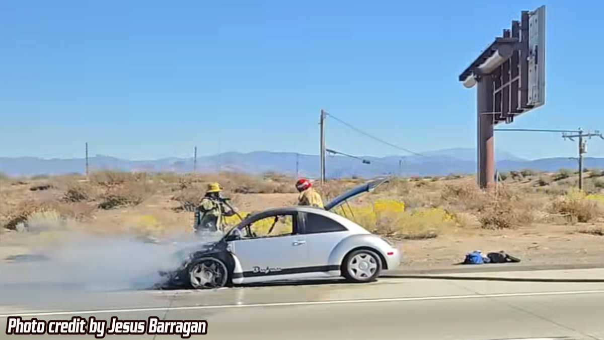 OAK HILLS, CA. (Pain In The Pass) >> The San Bernardino County Fire Department quickly extinguished a vehicle on fire Friday on northbound Interstate 15.