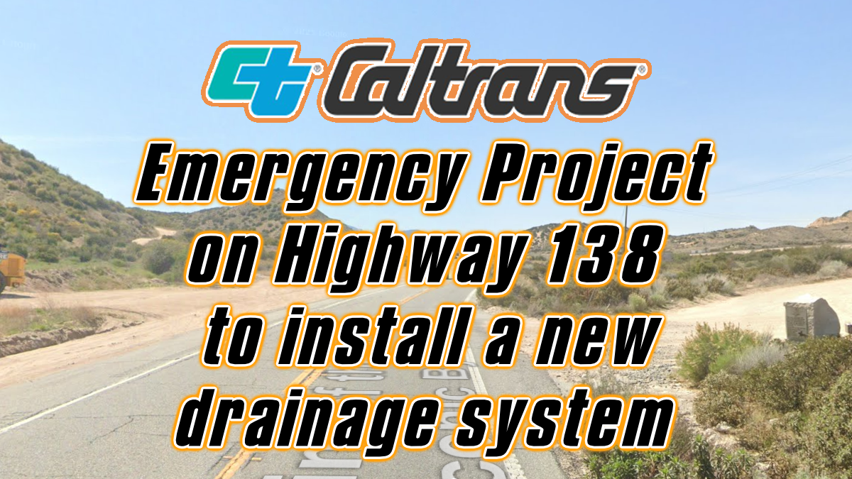 HESPERIA, CA. (Pain In The Pass) >> The California Department of Transportation (Caltrans) announces the start of an emergency project to install a drainage system along State Route Highway 138 (SR-138) between Interstate 15 Freeway and Summit Valley Road just west of Summit Office Road approximately 0.3 miles section of the highway. (see map below)