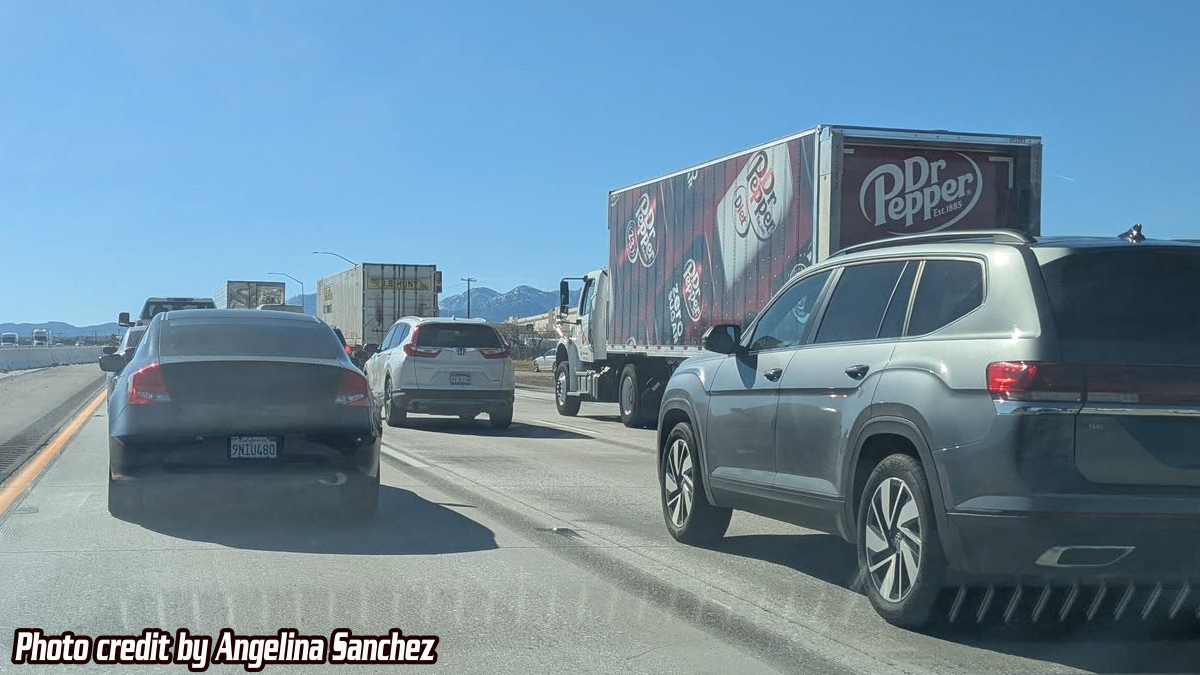 Traffic was backup at one point over 7 miles long, all the way before the Bear Valley Road exit. Also, all side streets like Amargosa and Mariposa Roads were backup.