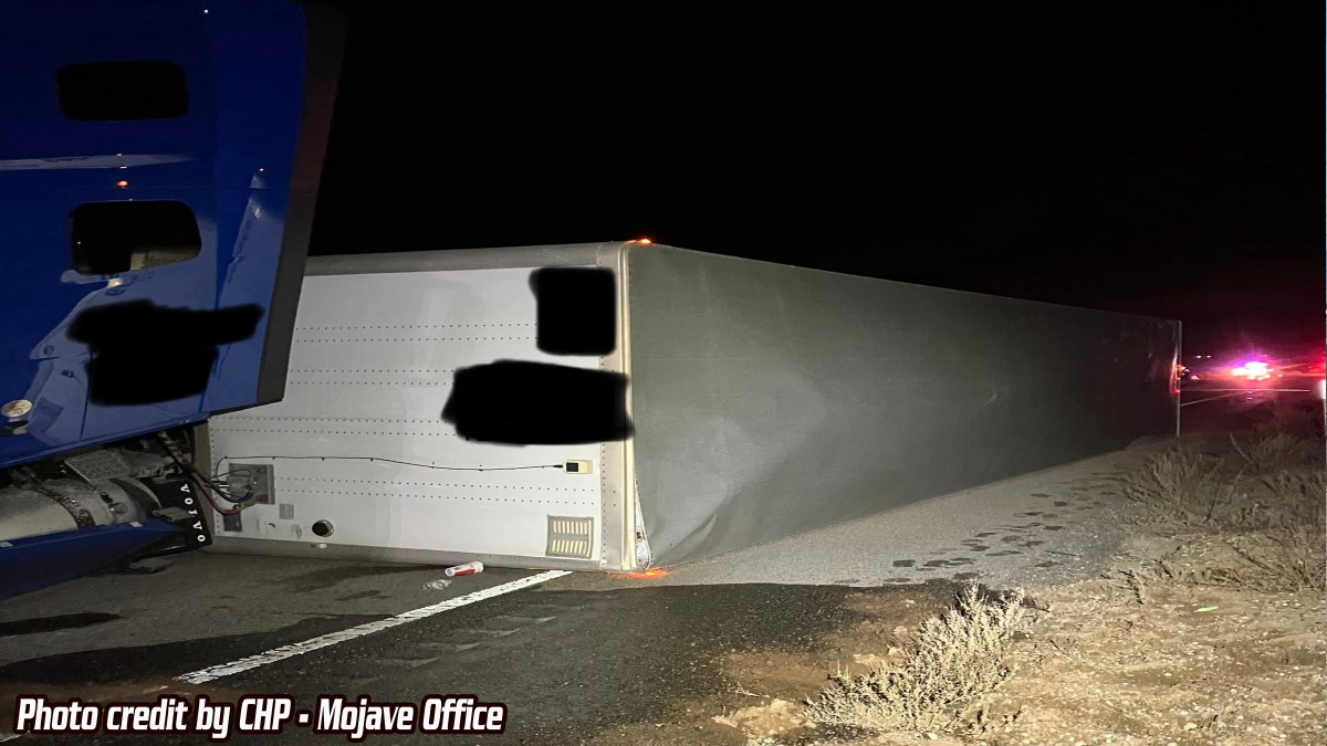 RED MOUNTAIN, CA. (Pain In The Pass) >> A semi tractor-trailer rollover caused traffic disruptions Thanksgiving night on Highway 395.