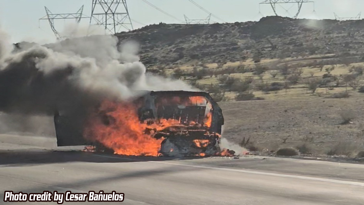 California Highway Patrol and the fire Department said they received a call of a vehicle fire that happened on southbound I-15 just before the Dale Evans Pkwy exit at around 2:15pm on December 8, 2025. It looks like a SUV on fire on the right shoulder of the freeway.