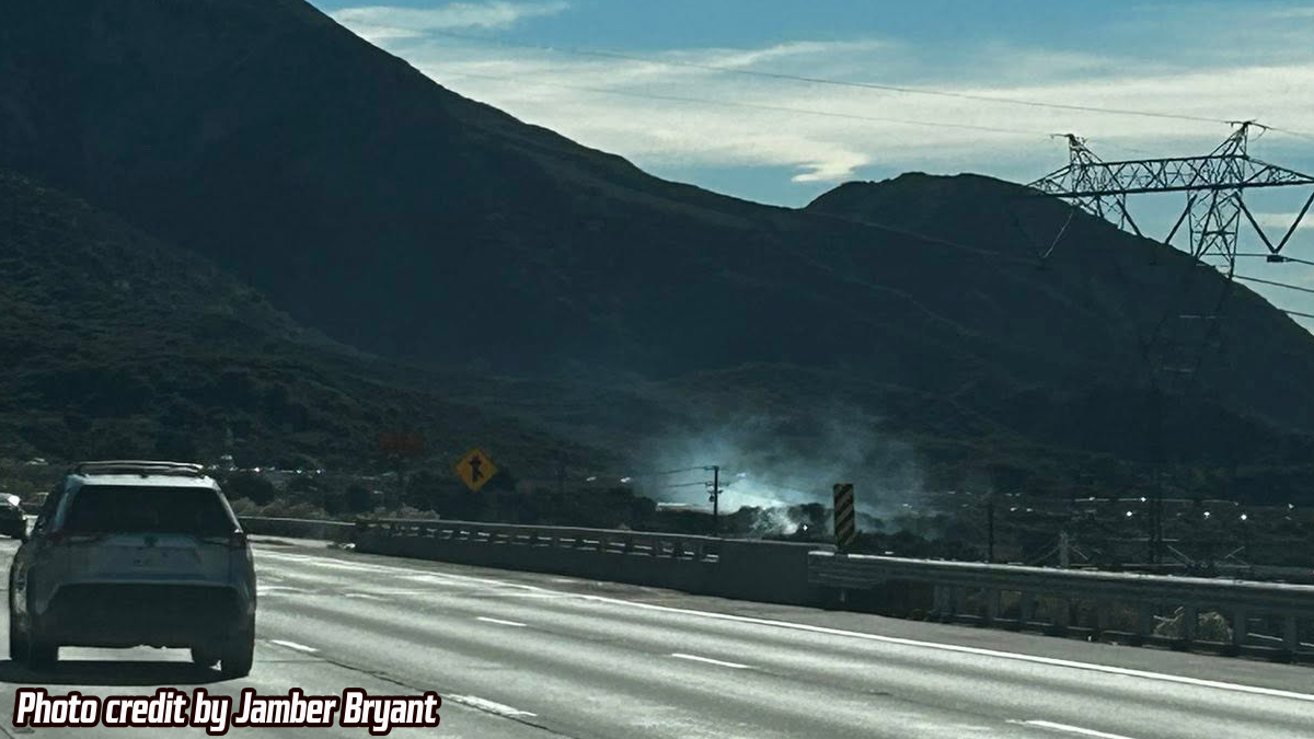 California Highway Patrol and San Bernardino County Fire crews responded to the fire beneath Interstate 15 Freeway about 10:20am December 13, 2025, on Cleghorn Rd.