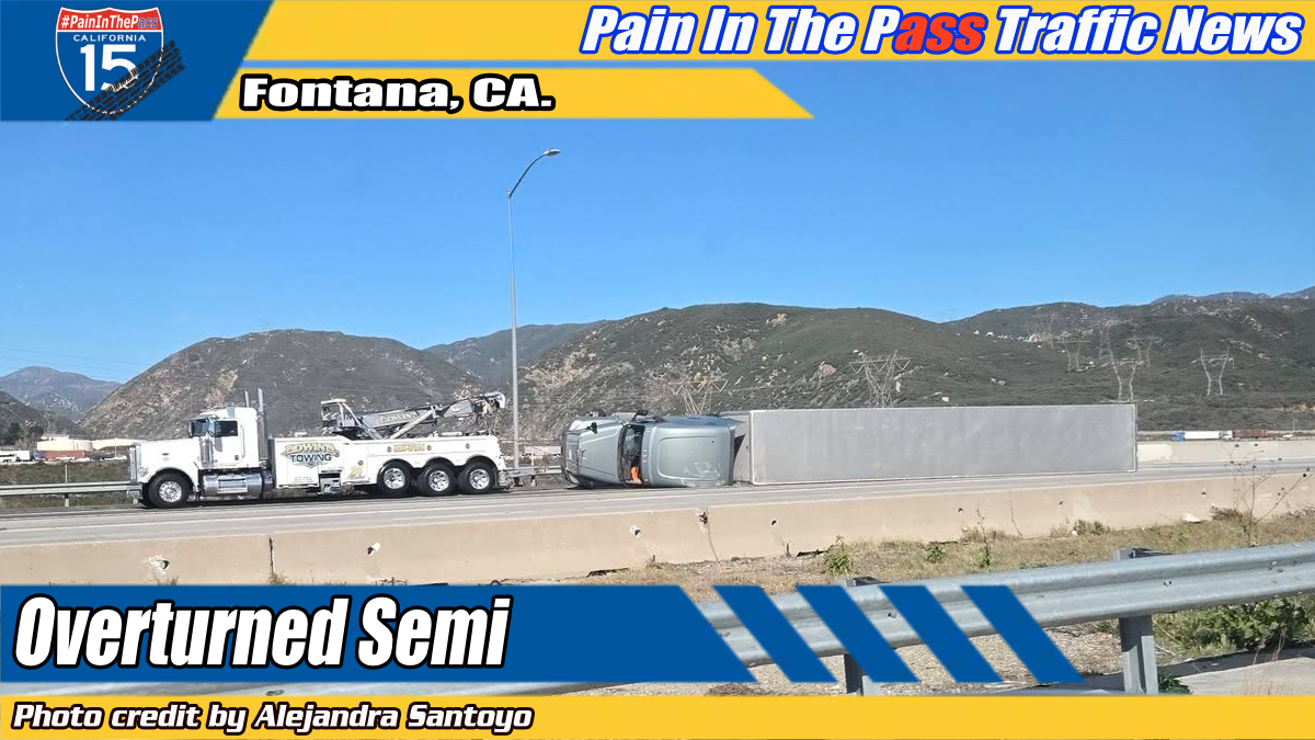 According to the California Highway Patrol, the big rig flipped onto its side just around 9:42am January 9, 2026, on southbound I-15 just before the Sierra Avenue exit.