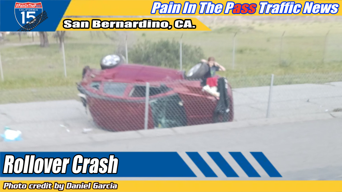 SAN BERNARDINO, CA. (Pain In The Pass) >> There were no serious injuries to the driver inside a vehicle in a rollover crash on northbound Interstate 215 Friday afternoon.