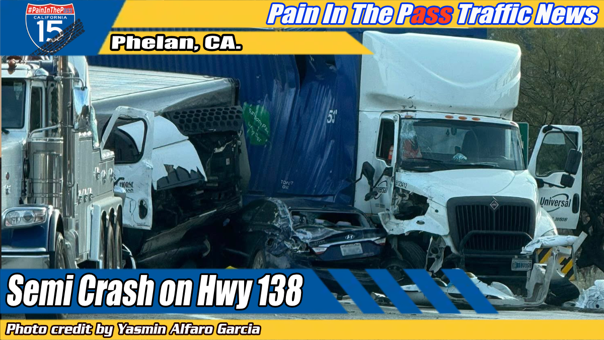 CAJON PASS, CA. (Pain In The Pass) >> A semi tractor-trailer tried to exit from southbound Interstate 15 onto Highway 138 in Cajon Pass hit a car and another semi after officials it lost its brakes.