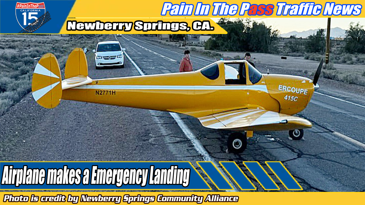 NEWBERRY SPRINGS, CA. (Pain In The Pass) >> A vintage small aircraft made an emergency landing on National Trails Highway/Route 66 near the Bagdad Cafe after experiencing engine issues.