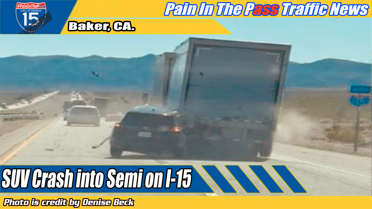 BAKER, CA. (Pain In The Pass) One person suffered injuries when a SUV rear-ended a moving semi tractor-trailer on Interstate 15 Thursday afternoon, authorities said.
