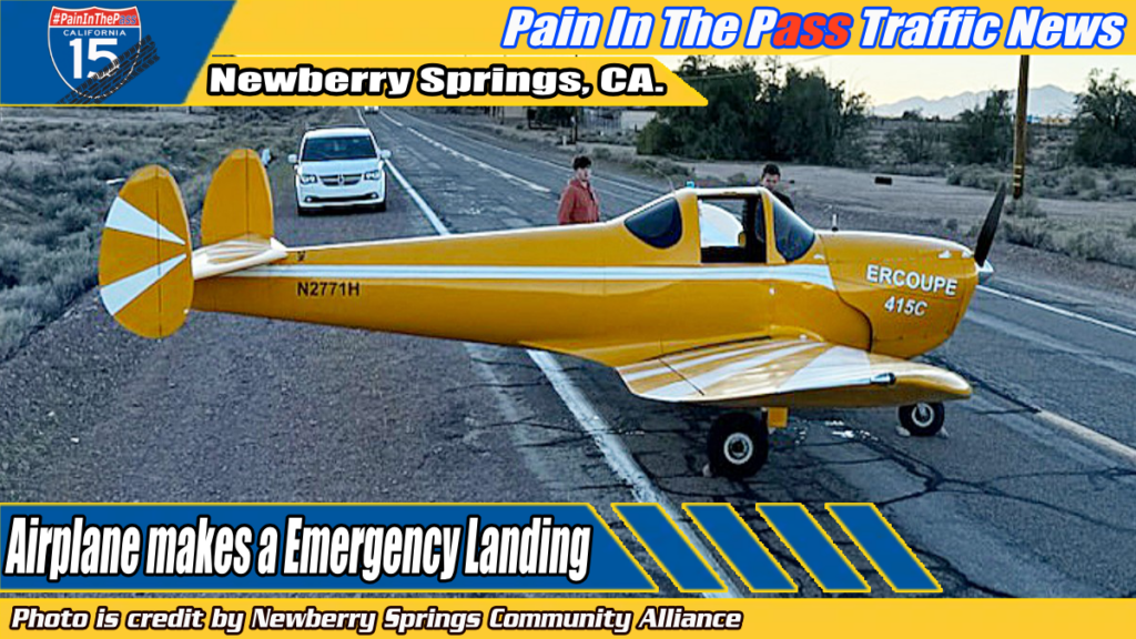 NEWBERRY SPRINGS, CA. (Pain In The Pass) >> A vintage small aircraft made an emergency landing on National Trails Highway/Route 66 near the Bagdad Cafe after experiencing engine issues. The