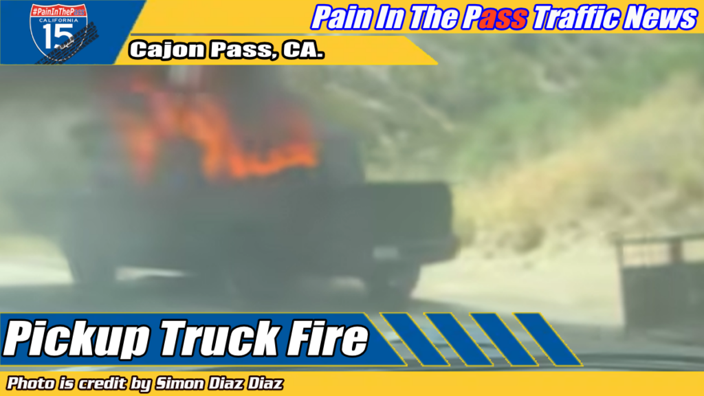 CAJON PASS, CA. (Pain In The Pass) >> A pickup truck pulling a trailer caught fire in the northbound lane of Interstate 15 Saturday afternoon. California Highway Patrol and San