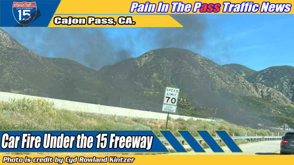 CAJON PASS, CA. (Pain In The Pass) >> A car fire underneath the 15 Freeway Saturday afternoon in the Cajon Pass, The incident happened at 4:06pm April 18, 2026, on