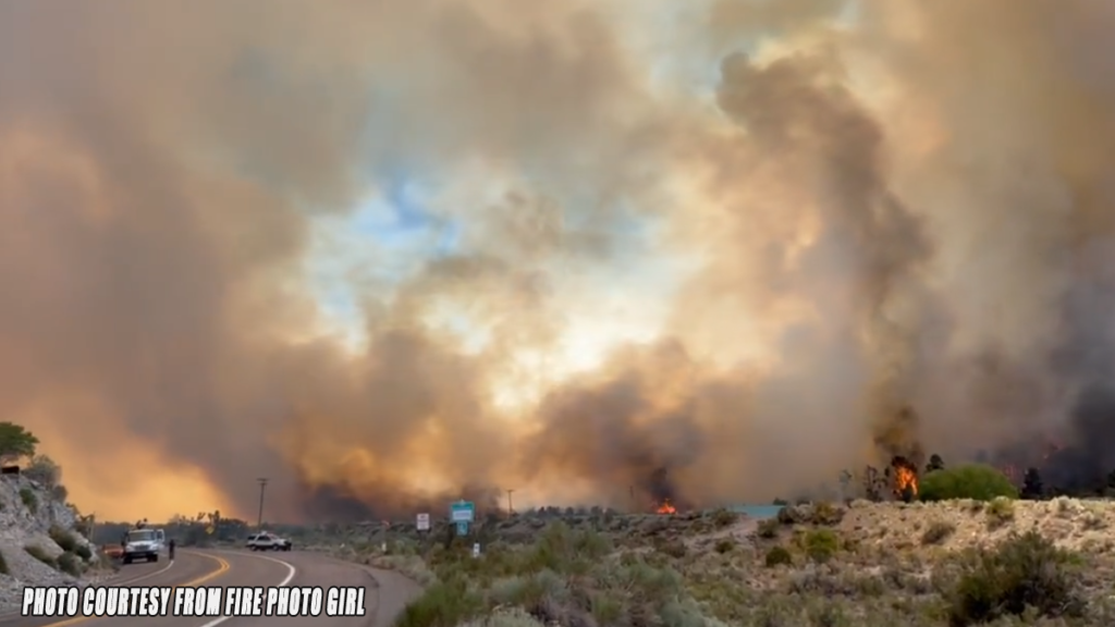 WRIGHTWOOD, CA. (Pain In The Pass) >> A wildfire burning in the mountain community of Wrightwood since Saturday evening has flared up and dramatically grown in size causing a big smoke