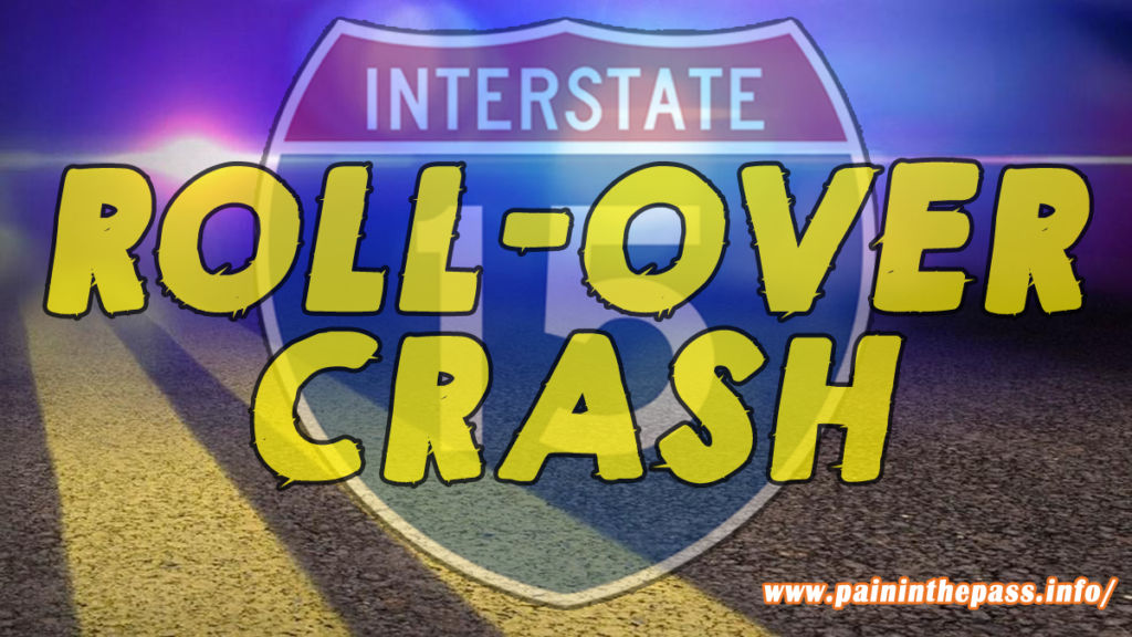 BAKER, CA. (Pain In The Pass) >> A solo-vehicle rollover crash along Interstate 15 near Baker Boulevard offramp sent three people to the hospital Sunday afternoon, with two having to