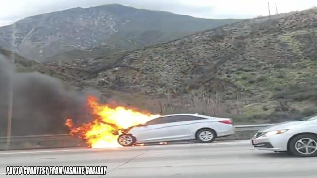 CAJON PASS, CA. (Pain In The Pass) >> Firefighter extinguished a car fire on northbound Interstate 15 Monday afternoon. California Highway Patrol, San Bernardino County Fire Department, CAL Fire, and