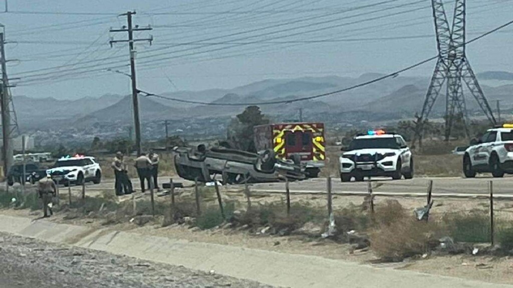 HESPERIA, CA. (Pain In The Pass) >> A female driver was injured from a hit and run rollover crash off of Interstate 15 Sunday afternoon. (Photo above is credit by
