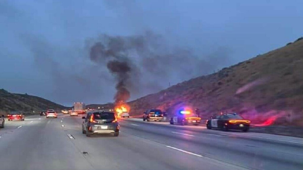 CAJON PASS, CA. (Pain In The Pass) >> Crews responded to a vehicle fire in the Cajon Pass on Sunday night. (Photo above is credit by Jimmy Nevarez) At around