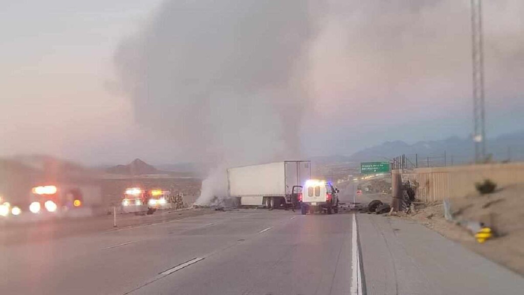 VICTORVILLE, CA. (Pain In The Pass) >> Driver walks away after a semi tractor trailer crashed and burst into flames on southbound Interstate 15 Tuesday morning. (Photo above is credit