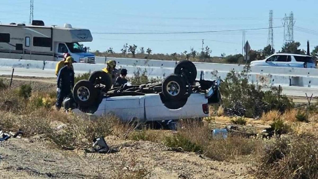 HESPERIA, CA. (Pain In The Pass) >> One person injured after driver lost control of the truck and crashed while trying to pass at least one vehicle on Summit Valley