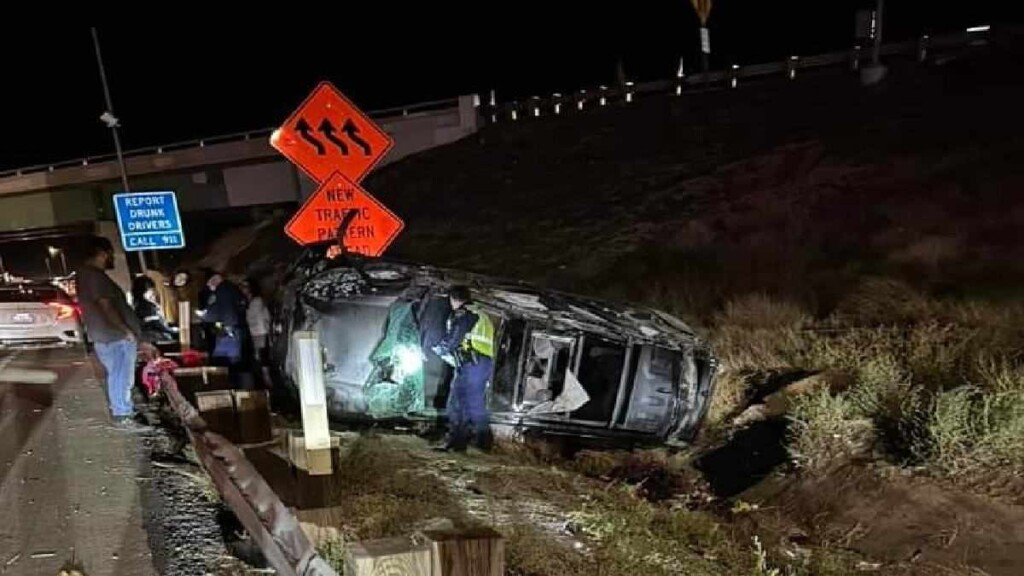 HESPERIA, CA. (Pain In The Pass) >> Two people were hospitalized after a SUV rollover multiple times on Interstate 15 Tuesday night. (Photo above is credit by Robert Sherman) The