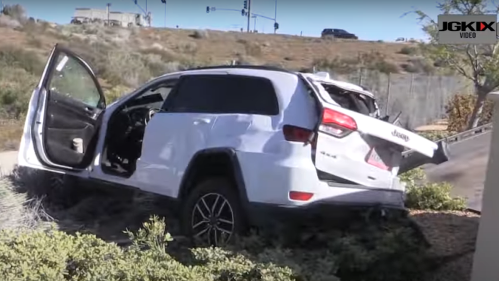 HESPERIA, CA. (Pain In The Pass) >> A male driver was able to get out of his vehicle after his Jeep flew off an offramp and overturned multiple times before