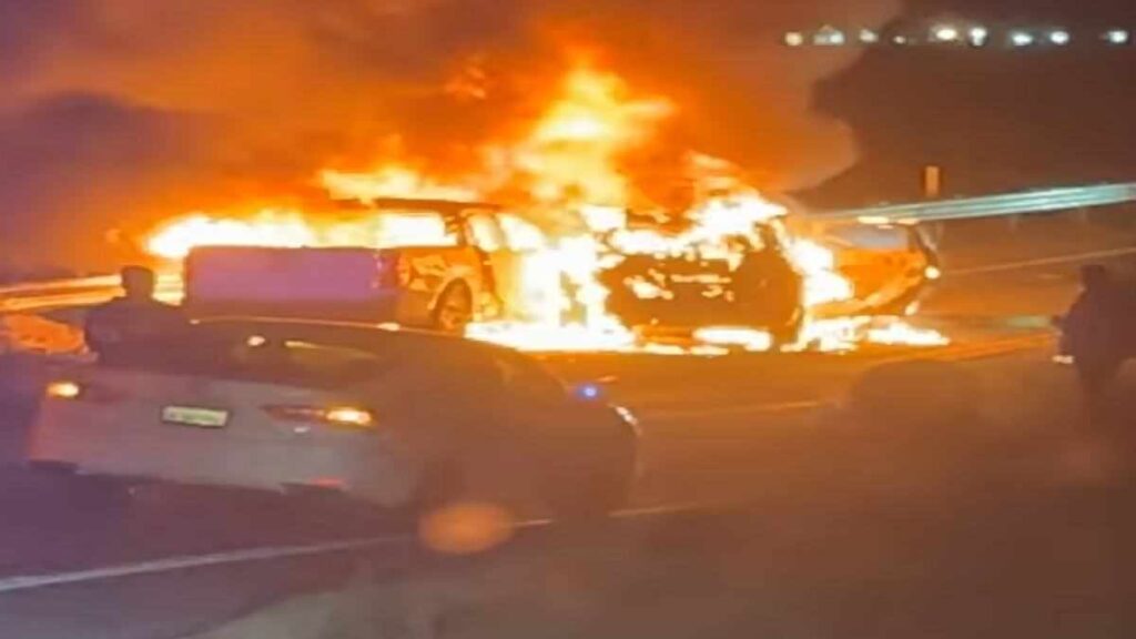 CAJON PASS, CA. (Pain In The Pass) >> Five people were injured Friday night, when officials said two vehicles crashed and both caught fire on Highway 138. (Photo above is