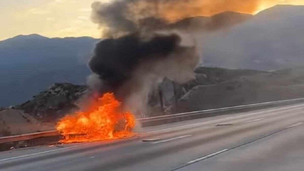 VICTORVILLE, CA. (Pain In The Pass) >> – One person is dead in a car fire on southbound Interstate 15 Sunday afternoon. The car fire occurred 1:10pm on Sunday, February