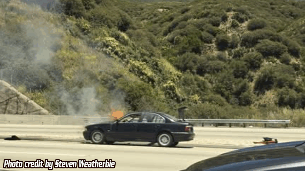 CAJON PASS, CA. (Pain In The Pass) >> No injuries were reported after a car caught fire just off of Interstate 15 in the Cajon Pass Friday afternoon. California Highway