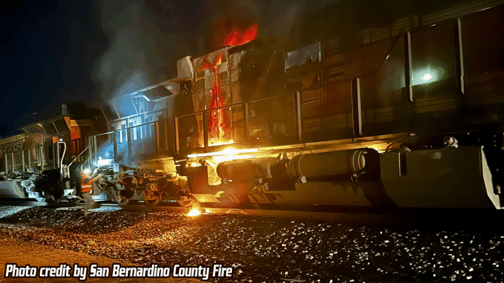 ESSEX, CA. (Pain In The Pass) >> A Burlington Northern and Santa Fe (BNSF Railway) locomotive caught on fire Saturday night in San Bernardino County.