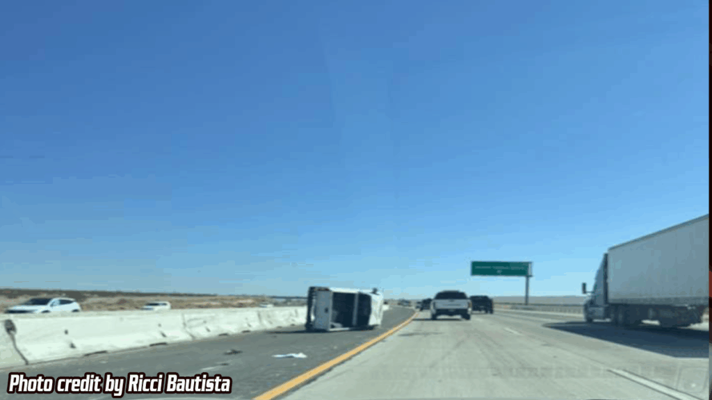BARSTOW, CA. (Pain In The Pass) >> A crash cause both vehicle to rollover on Interstate 15 in Barstow Saturday morning. California Highway Patrol said the initial crash was reported