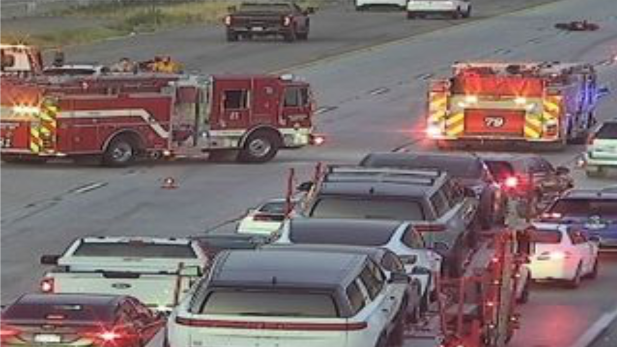 All lanes of northbound I-15 were closed for a time. Two lanes reopened at 7:45pm., but two lanes still remain blocked.