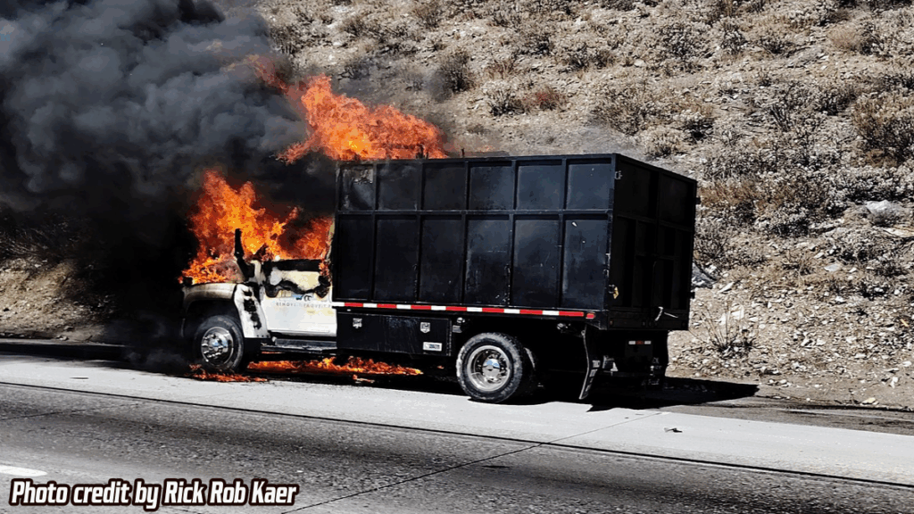 CAJON PASS, CA. (Pain In The Pass) >> A vehicle fire broke out on northbound Interstate 15 in the Cajon Pass Tuesday afternoon. California Highway Patrol and firefighters responded to