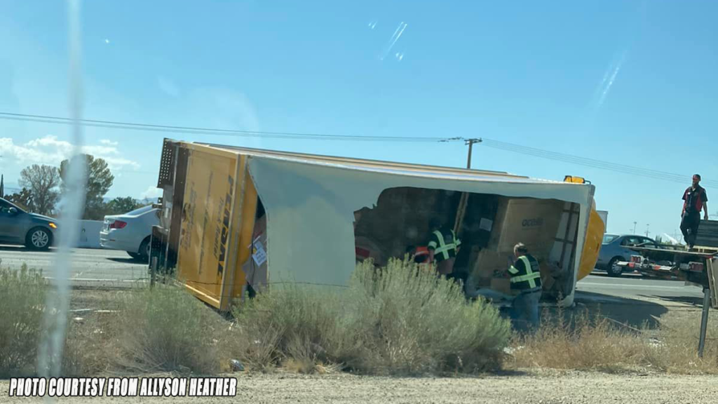 HESPERIA, CA. (Pain In The Pass) >> A 27 foot Penske box truck were involved in a crash that delayed traffic on southbound Interstate 15 Saturday morning. The vehicle landing