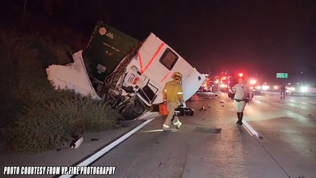 FONTANA, CA. (Pain In The Pass) >> Powerful Santa Ana winds have knocked over at least five big rig semi’s pulling trailers from reports on the CHP traffic log, as of