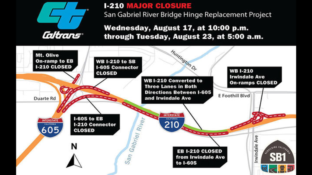 IRWINDALE, CA. (Pain In The Pass) >> A major stretch of the 210 Freeway in Irwindale will be closed for a full five days starting Wednesday night Repairs of the