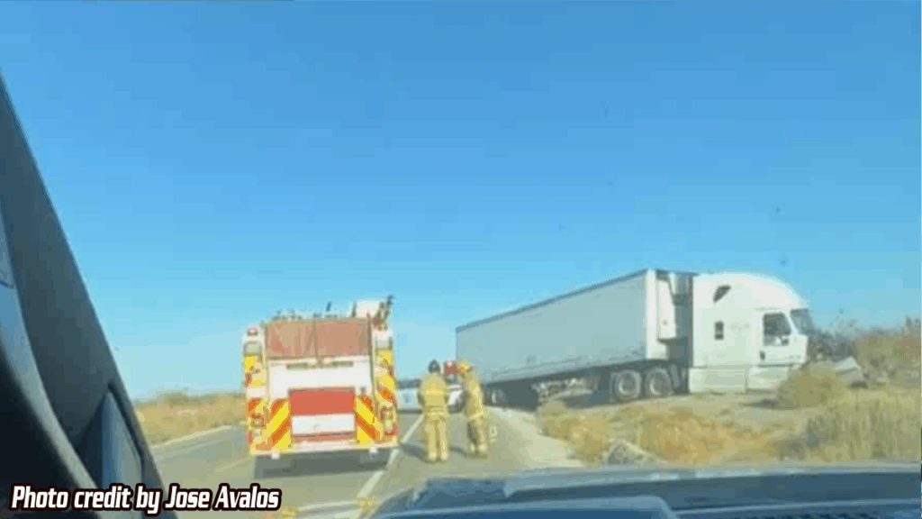 LUCERNE VALLEY, CA. (Pain In The Pass) >> A rolled-over semi-truck crash has closed parts of Highway 18 at Fairlane Road Tuesday evening near the Mitsubishi Cement Plant. According to