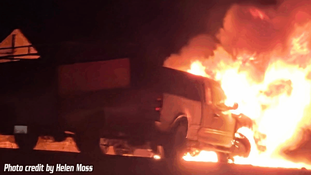 BIG BEAR, CA. (Pain In The Pass) >> A vehicle fire spread to vegetation along Highway 18 Friday afternoon near Big Bear. (Photo above is credit by Shaolinkungfufiveanimalswalker Walker) The