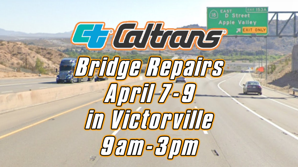 VICTORVILLE, CA. (Pain In The Pass) >> The California Department of Transportation (Caltrans) alerts the public that Specialized Bridge crew will be conducting bridge repairs on Interstate 15 (I-15) in