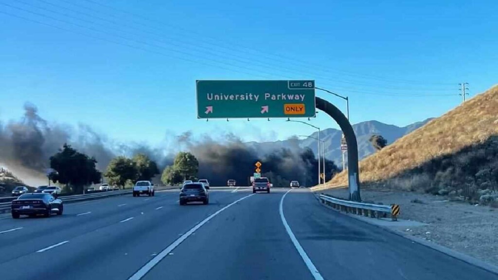 SAN BERNARDINO, CA. (Pain In The Pass) >> One person was killed in a three-vehicle accident on 215 Freeway in San Bernardino Wednesday afternoon. (Photo above is credit by Scott