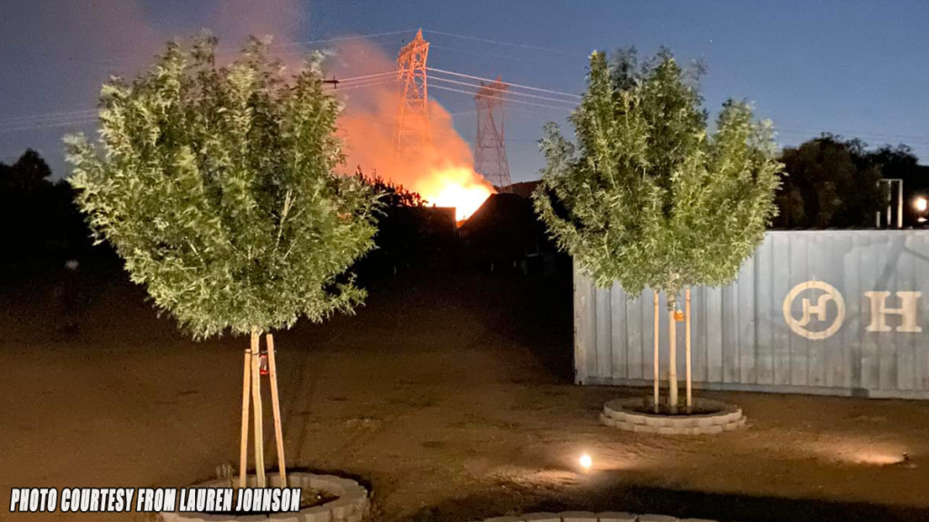 HESPERIA, CA. (Pain In The Pass) >> Firefighters made significant progress Sunday morning containing a structure/commercial building on fire that turned into a small brush fire that was probably ignited