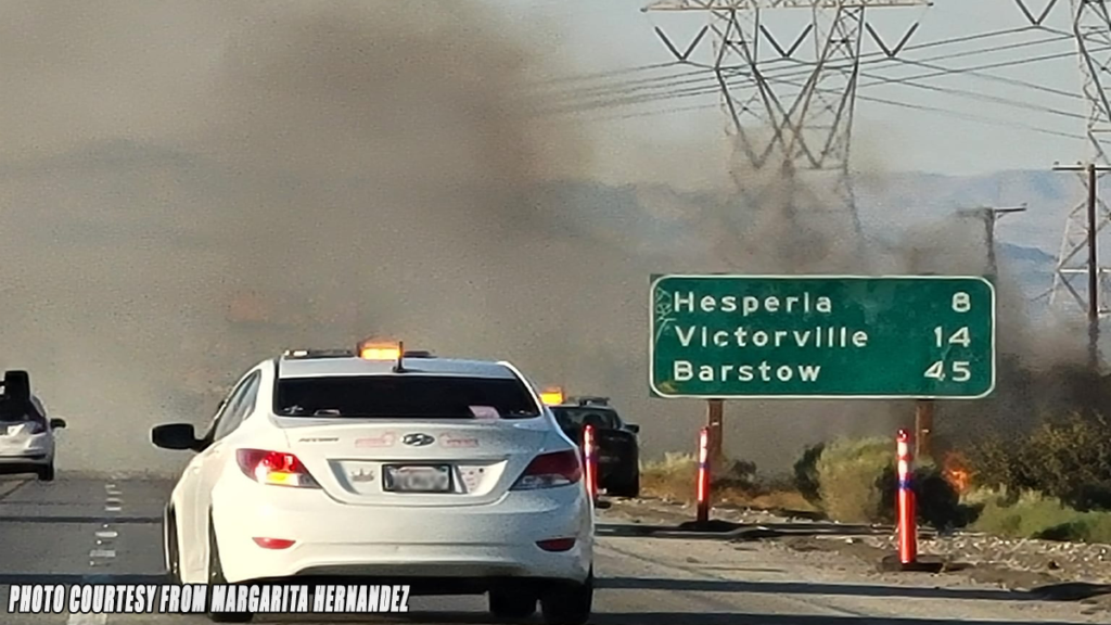OAK HILLS, CA. (Pain In The Pass) >>A small brush fire burning next to northbound Interstate 15 caused traffic delays in the area on Wednesday evening, authorities said. The fire