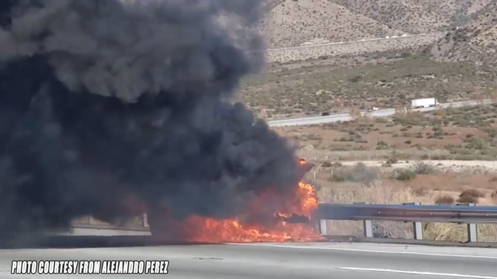 CAJON PASS, CA. (Pain In The Pass) >> Firefighters were quickly able to extinguish the flames on Interstate 15 at the top of the Cajon Pass. (Photo above is credit
