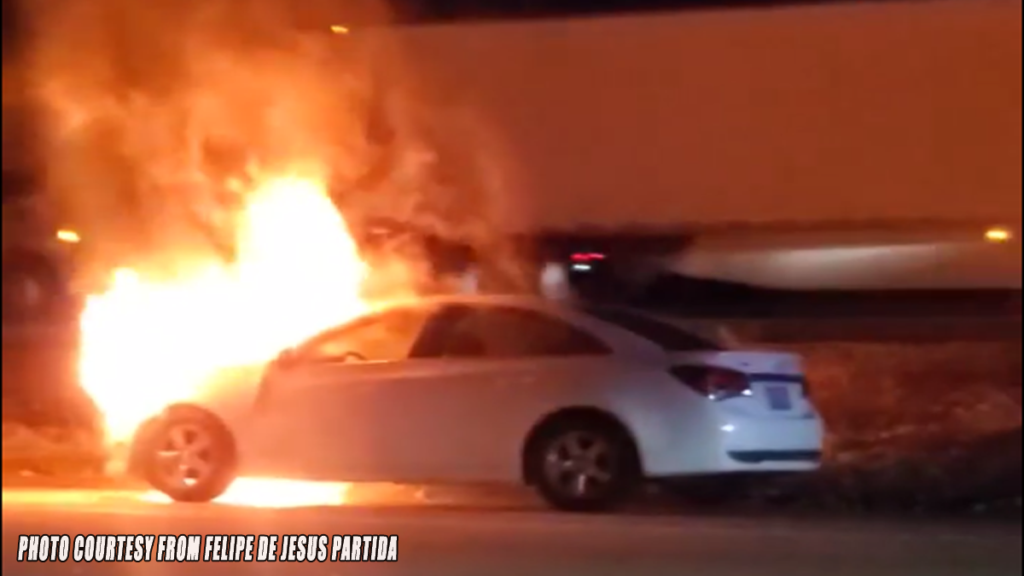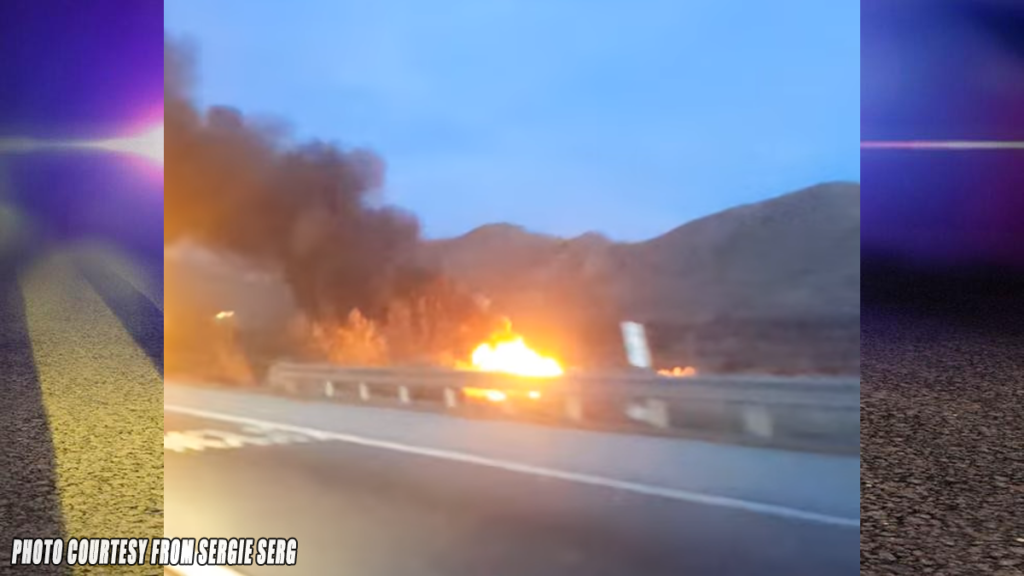 HESPERIA, CA. (Pain In The Pass) >> A car caught fire on northbound Interstate15 Friday night, created an orange glow that you could see for miles. California Highway Patrol and