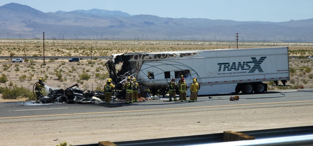 BARSTOW, CA. (Pain In the Pass) >> All northbound lanes are reopen Thursday morning after a tractor-trailer fire shut down lanes on Interstate 15 in Barstow. (Photo above is credit