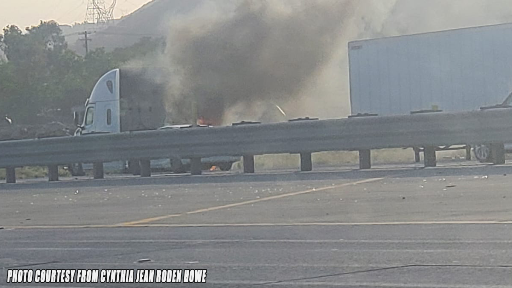 FONTANA, CA. (Pain IN The Pass) >> A big rig tractor caught fire on southbound Interstate 15 Sunday evening.
