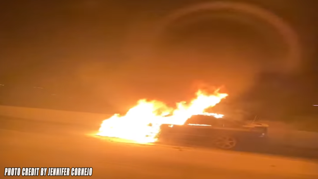 FONTANA, CA. (Pain In The Pass) >> A car caught fire on southbound Interstate 15 in Fontana Friday night. California Highway Patrol and San Bernardino County Fire Department were getting