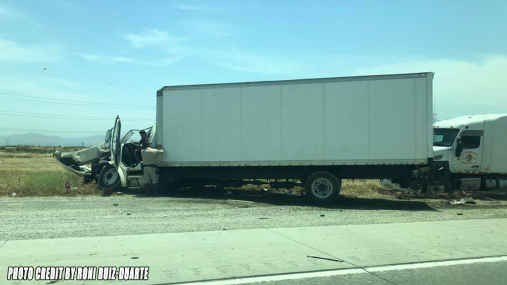 FONTANA, CA. (Pain In The Pass) >> A box truck rear-ended a semi gas tanker trailer on Tuesday afternoon, northbound Interstate 15 in Fontana authorities said. The crash was reported