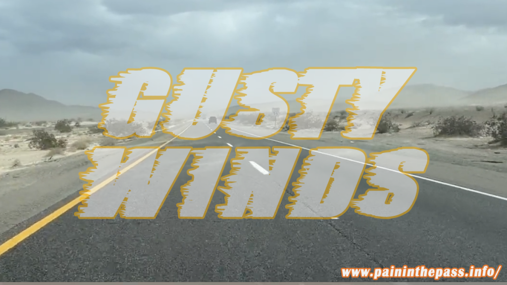 HIGH DESERT, CA. (Pain In The Pass) >> Strong gusty winds are expected with the weather system. This could create hazardous driving conditions and areas of blowing dust. Around 10am
