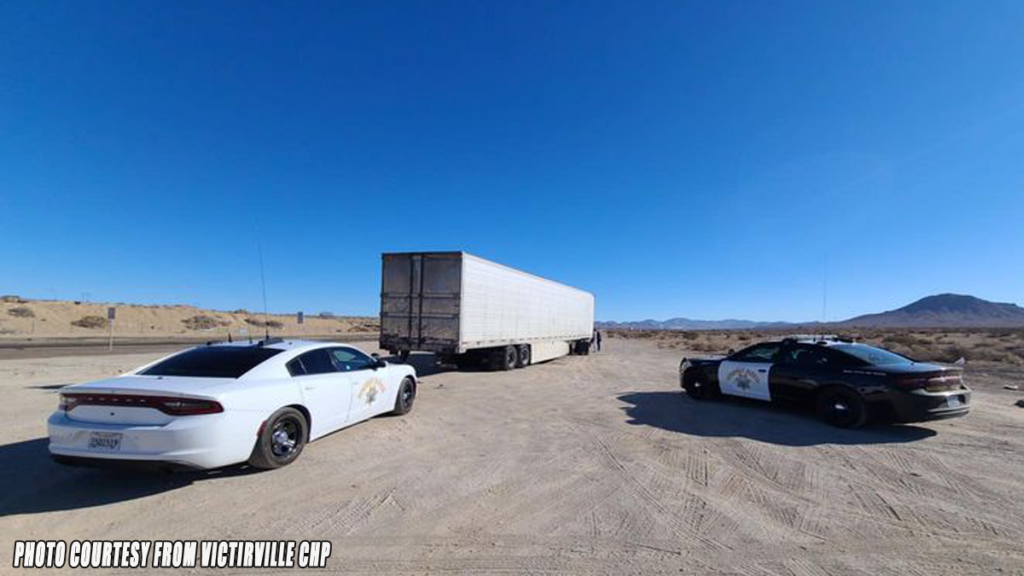 VICTORVILLE, CA. (Pain In The Pass) >> A suspect was arrested Thursday morning after GPS tracking in a stolen big rig led California Highway Patrol to the vehicle. At approximately